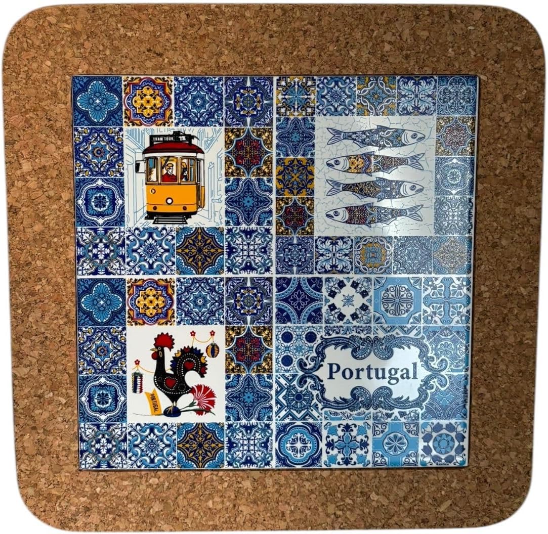 Azulejo is a traditional Portuguese ceramic tile that has been hand-painted and glazed. This set of Azulejo tiles is made from cork and features a traditional Portuguese design. The tiles are perfect for use as trivets, coasters, or decorative accents in any room. They are lightweight and easy to clean, making them a great choice for everyday use. The tiles are also a great souvenir or gift from Portugal, and are sure to be treasured for years to come.