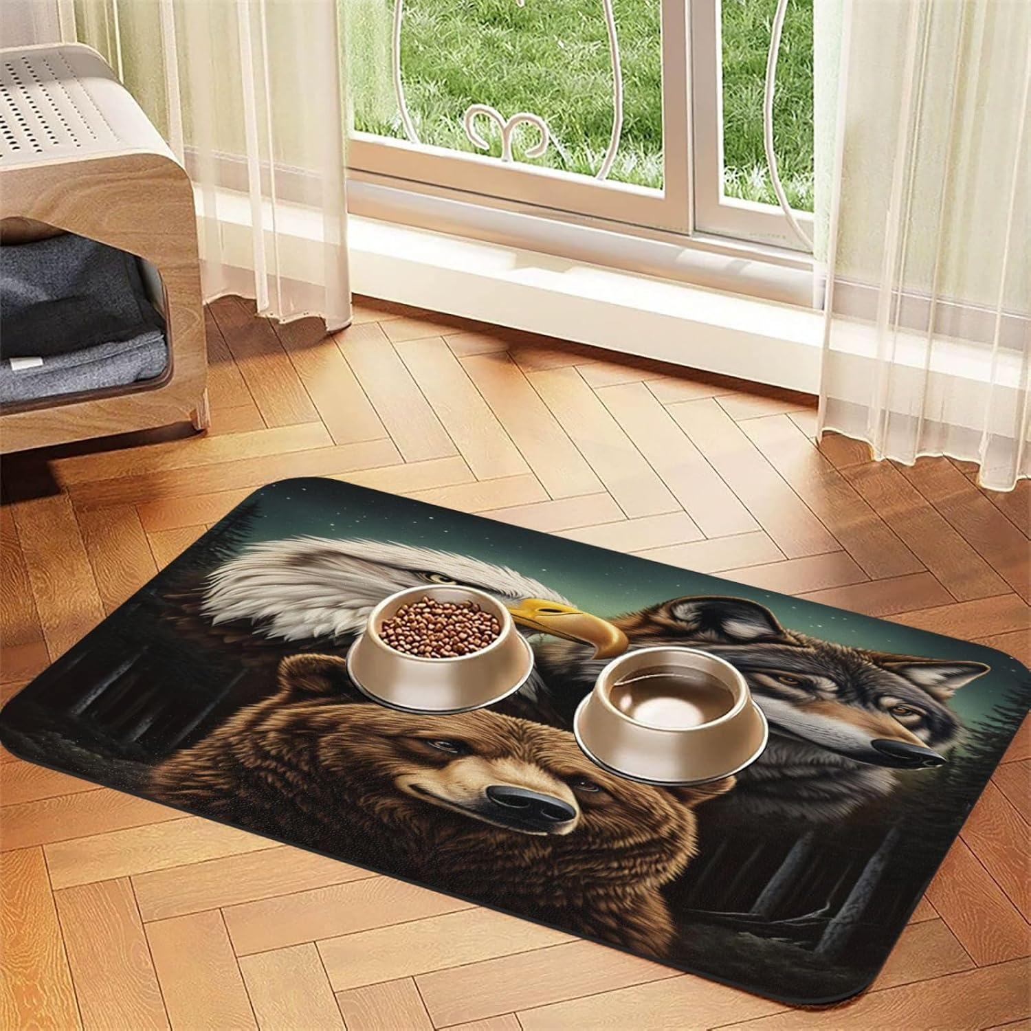 Pet Food Mat, Dog Food Mat, Cat Food MatSize:30 X 45 cm: 11.81 X 17.72 inches40 X 60 cm: 15.75 X 23.62 inchesProduct Includes: One pet food matTarget Audience: Suitable for dogs, cats, and other pets.Printing: Our pet food mat uses high-definition printing technology, resulting in rich colors, clear patterns, and fade resistance.Variety of Styles: We offer a variety of different styles for you to choose from.Note: Due to different measurement methods, a size error of 1-3 cm is normal.What are you waiting for? Buy one for your beloved pet now!